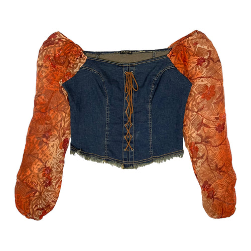 Women's Off The Shoulder Long Sleeve Denim Corset - Size L