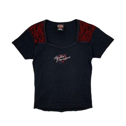 Women's 2001 Harley Davidson Heart Babydoll Tee - Size M