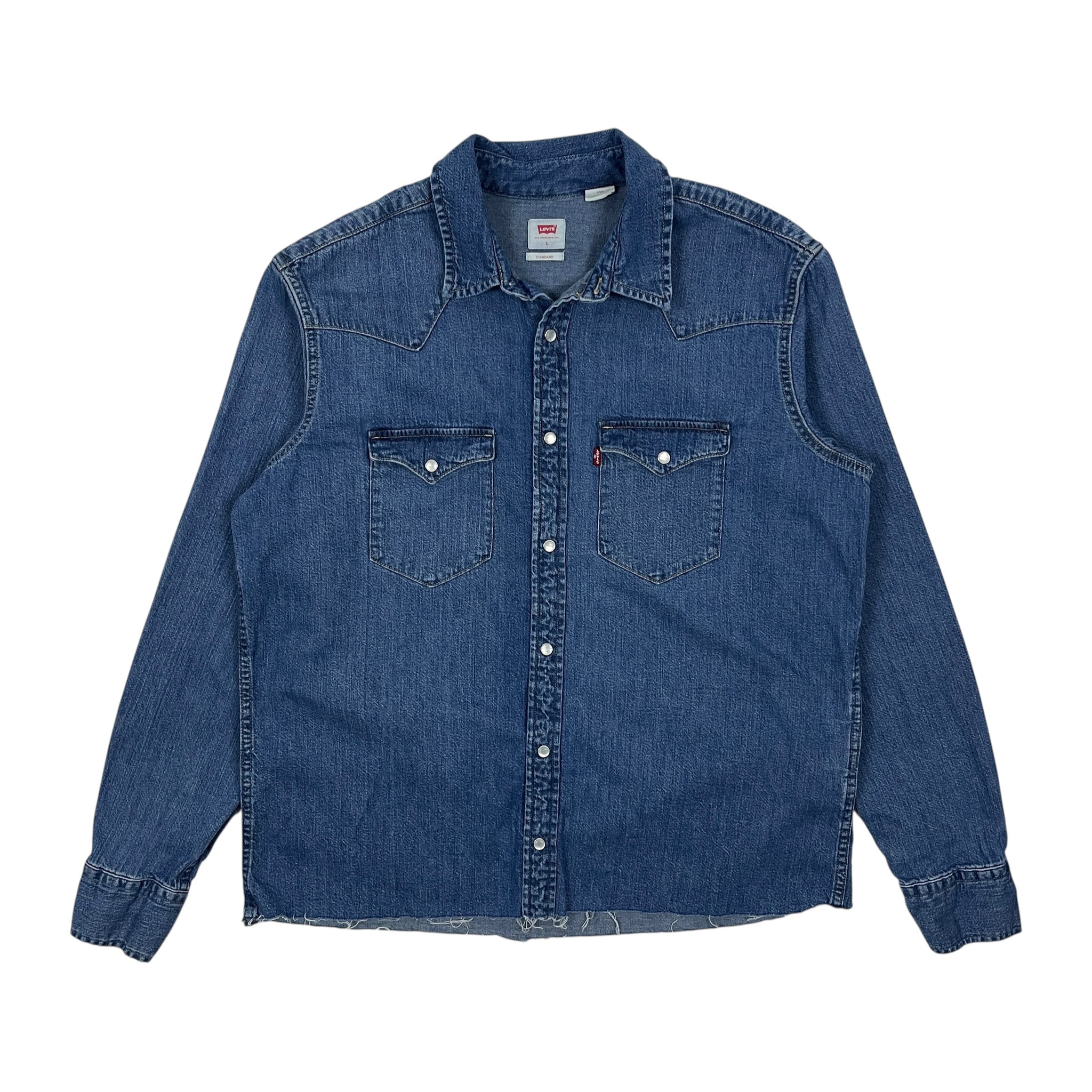 Features custom raw hem done in-house for the perfect boxy fit