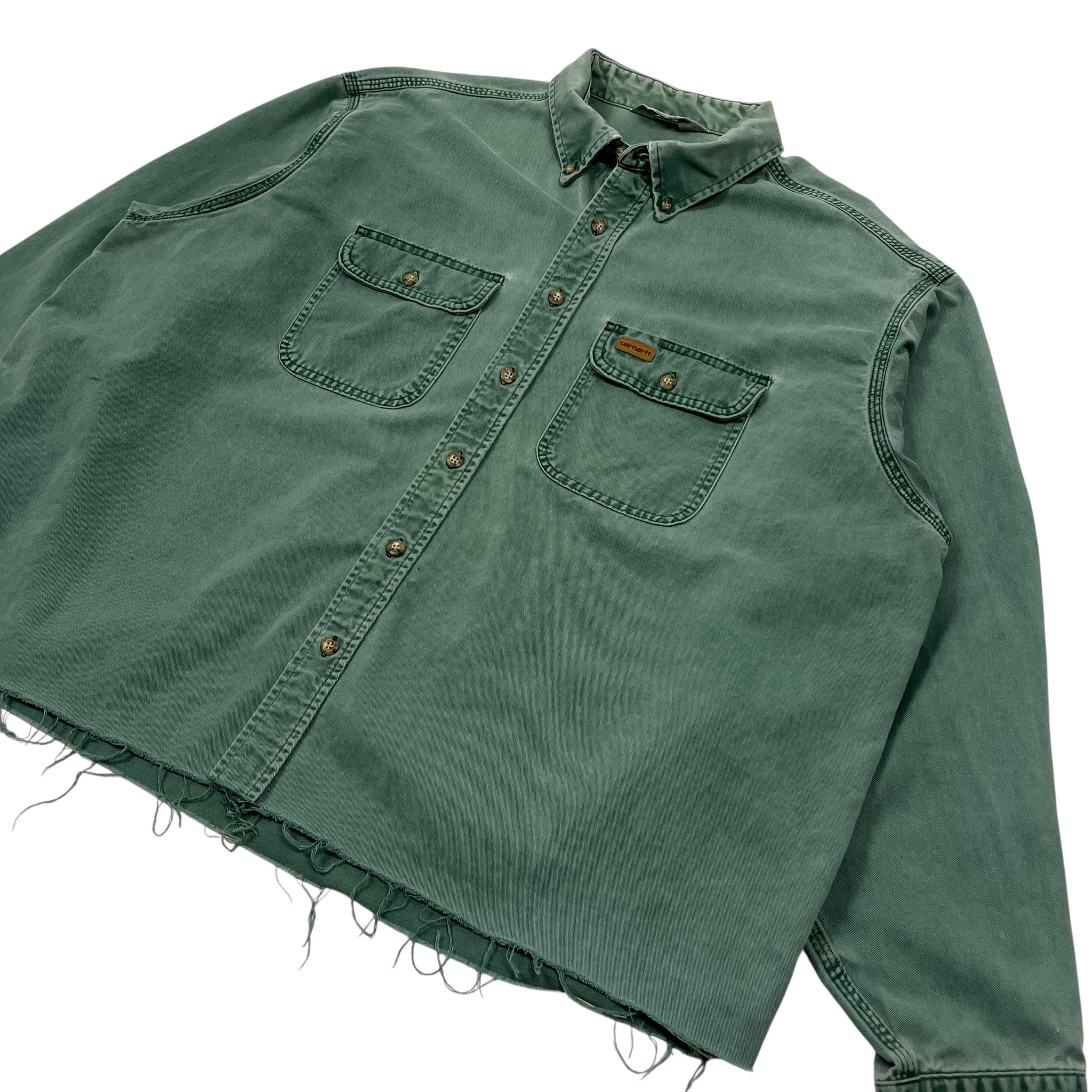 Features custom raw hem done in-house for the perfect boxy fit